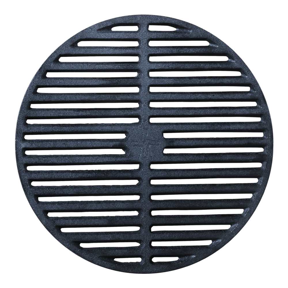 Der Grillrost besteht aus vorbehandeltem, duktilem Gusseisen und ist dadurch extrem langlebig und nahezu unzerstörbar. Im Vergleich zu dünnen Edelstahlrosten erreicht er deutlich höhere Temperaturen und hält diese konstant – ideal für scharfes Anbraten.