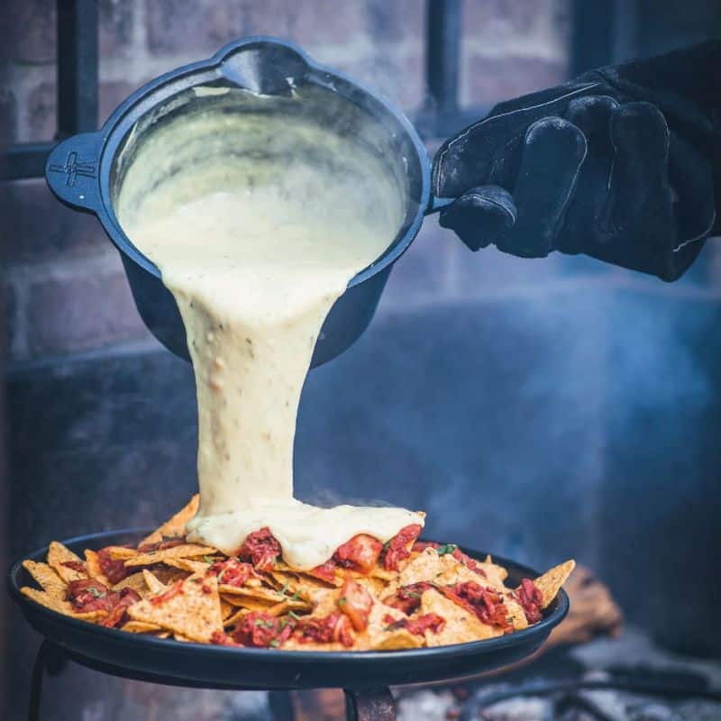 Die Gusseisen-Stielkasserolle kann auf nahezu jeder Wärmequelle