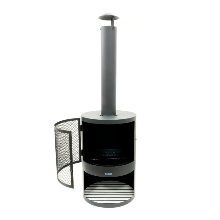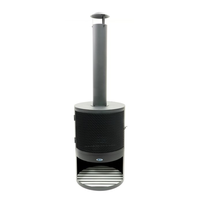 Der hohe Rauchabzug mit langem Schornstein sorgt dafür, dass der Rauch sauber nach oben entweicht. So kannst du direkt neben dem Kamin sitzen, ohne störenden Rauch im Gesicht zu haben.